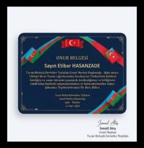 Etibar Həsənzadə Onur Belgesi ilə mükafatlandırıldı