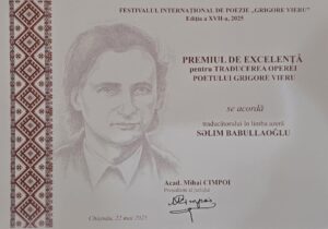 2025-ci il 20-23 may tarixlərində adını rumındilli ədəbiyyatın yeni tarixinə yazmış, həm Moldovanın, həm də Rumıniyanın klassiki kimi tanınan və sevilən şair, Moldova azadlıq hərəkatının liderlərindən olan Qriqore Vyerunun adını daşıyan XVII beynəlxalq poeziya festivalı keçirilib. Bəlli olduğu kimi XVII dəfə keçirilən festival bu il Rumıniyada, Yaş şəhərində start götürüb 22-23 may tarixlərində Moldovanın paytaxtı Kişineuda davam edib. Festivalda şair, tərcüməçi, Azərbaycan Yazıçılar Birliyinin katibi Səlim Babullaoğlu da iştirak edib. Babullaoğlu açıqlamasında bildirib: “Mən festivalın yalnız Moldovada, Kişineuda keçirilən hissəsinə qatıla bildim, çünki əvvəlki günlərdə biz özümüz Rumıniyadan şairləri qəbul edirdik. Mənim festivalda iştirakımın əsas səbəbi buydu ki, biz bu il görkəmli rumın şairi Qriqore Vyerunun “İynənin nəğməsi” adlı seçmə şeirlər kitabını nəşr etmişdik. Fevralın 14-də Azərbaycan Yazıçılar Birliyində Moldova və Rumıniyanın Bakıdakı səfirlərinin iştirakı ilə kitabın təqdimat mərasimini təşkil etmişdik. Kitabın tərtibçisi, əsas tərcüməçisi və ön sözün müəllifi mən idim. Əsas tərcüməçisi ona görə deyirəm ki, kitaba Xalq şairi Ramiz Rövşənin və Qəşəm İsabəylinin şairin daha əvvəlki tərcümələrindən də nümunələr daxil etmişdim. Ramiz müəllimin Vyerudan 8-9 tərcüməsi, Qəşəm müəllimin də şairin uşaq şeirlərindən 15 tərcüməsi vardı. Mən isə 70-ə yaxın şeir çevirmişdim, nəticədə əsaslı kitab ərsəyə gəlmişdi və şairin yaradıcılığına bu həcmdə ilk müraciət idi.