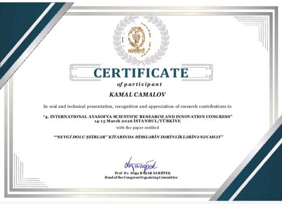 “İstanbul şəhərində keçirilən beynəlxalq konfransda şair Zaur Ustacın “Sevgi dolu şeirlər” kitabına həsr olunmuş məqalə ilə çıxış etməyim elmi və ədəbi baxımdan mühüm təcrübə kimi dəyərləndirilə bilər. Məruzəmdə şairin poetik yaradıcılığında əks olunan mənəvi-estetik dəyərləri, sevgi mövzusunun bədii ifadə xüsusiyyətlərini və onların tərbiyəvi mahiyyətini elmi müstəvidə təhlil etmişdim. Beynəlxalq elmi mühitdə səsləndirdiyim bu fikirlər Azərbaycan ədəbiyyatının və milli pedaqoji fikir ənənələrinin tanıdılması baxımından əhəmiyyətli hesab oluna bilər. Təqdim etdiyim məruzə konfrans iştirakçıları tərəfindən müsbət qarşılanmış və çıxışıma görə müvafiq sertifikatla təltif olundum. Bu fakt görülən elmi işin və təqdim olunan araşdırmanın beynəlxalq elmi mühitdə müəyyən dərəcədə qiymətləndirildiyini göstərir gümanındayam.”